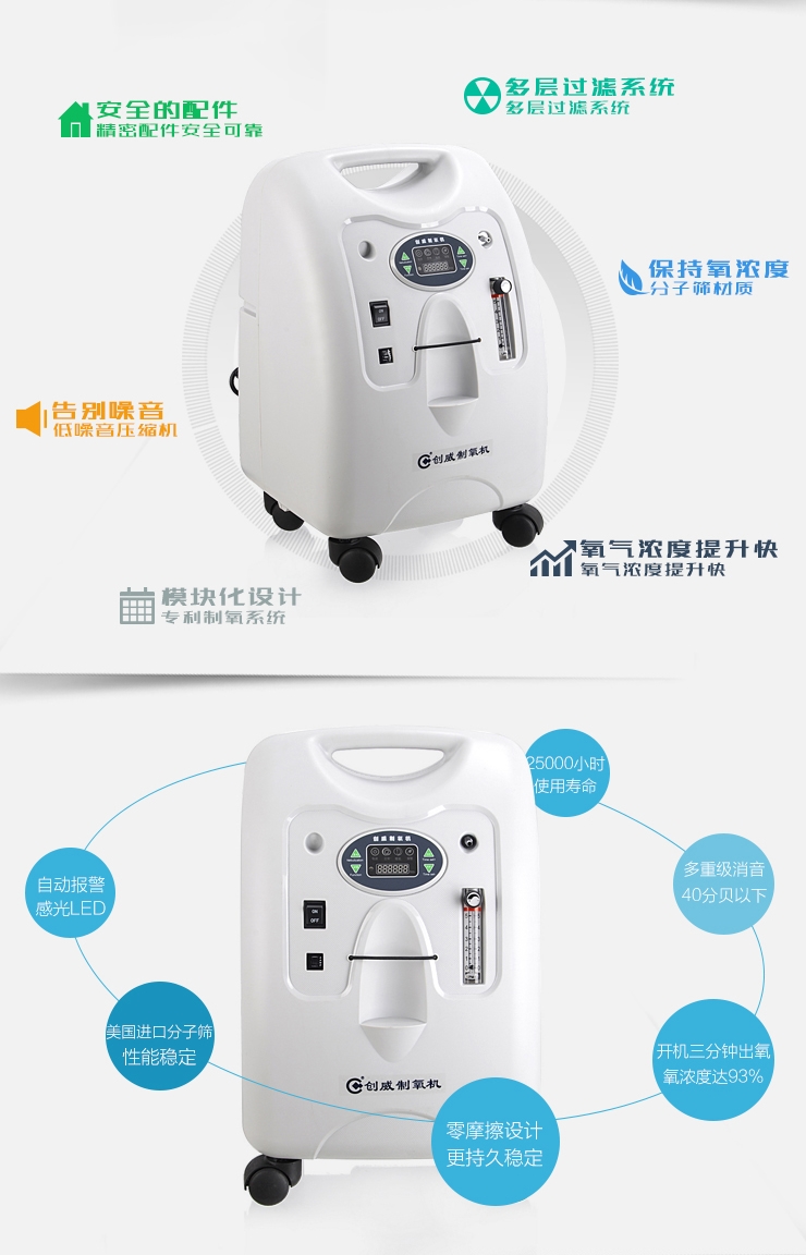 老年人重度哮喘,慢性阻塞性肺炎,塵肺癥,長久臥床,呼吸困難,使用6升機(jī)可以代替5升以下的機(jī)種 |